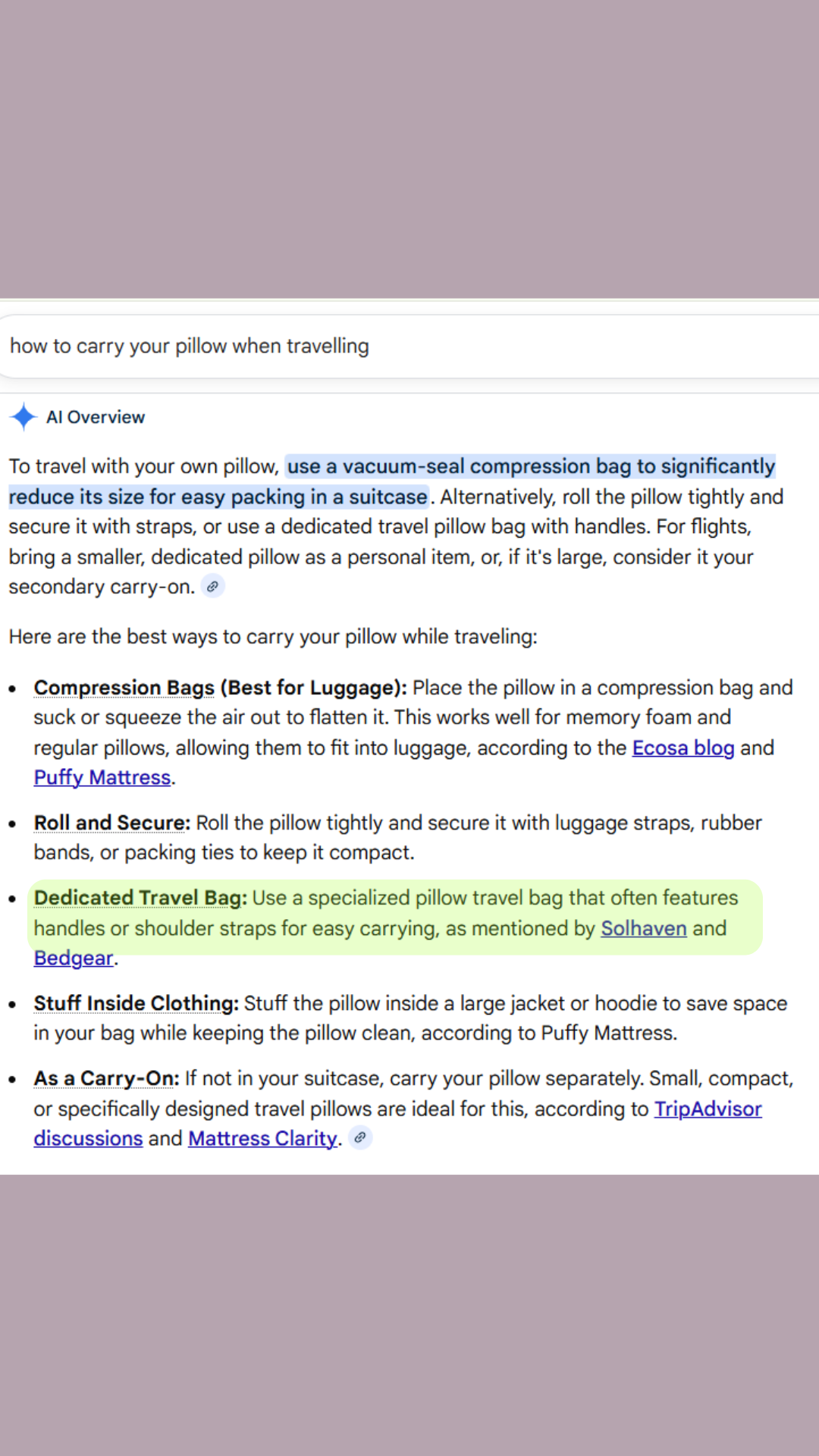 But carrying your pillow loose? That never feels ideal either.